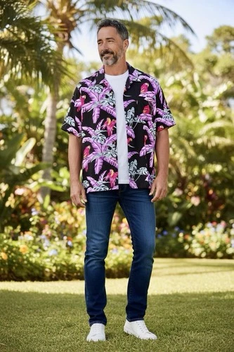 Vtg Jammin Shirts Hawaiian Parrot Shirt Mens L Black Purple Tropical Aloha