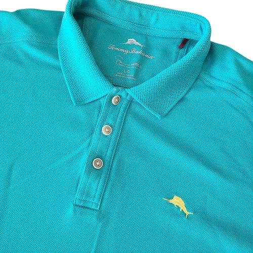Tommy Bahama Islandzone Supima Men's Large Aqua Tropical Short Sleeve Polo