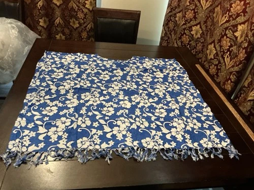 Plus Size Caftan Poncho Rayon Top Hawaiian Tropical Hibiscus Flower On Blue 32”