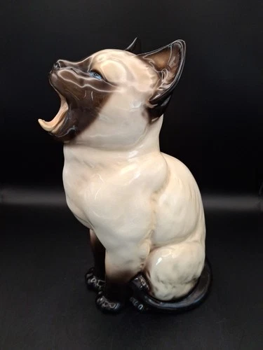 Vintage Harvey Knox HHH Pottery Yawning Siamese Cat Figurine