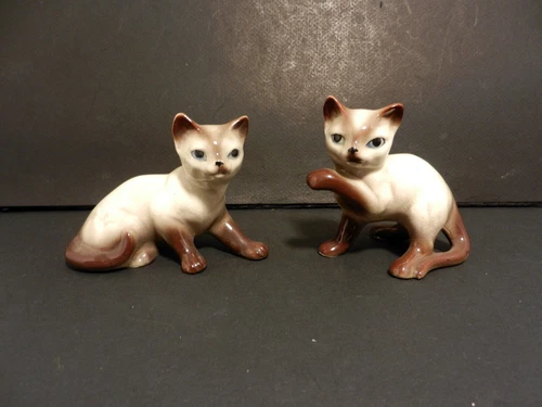 Pair of Siamese Japanese Porcelain Figurines of Cats 3" H Vintage 3579