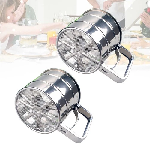 2pcs Flour Mesh Sieve Cup Flour Sifter Stainless Steel Net Sifting Strainer