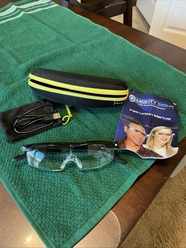 Mighty Sight Magnifying Glasses Rechargeable LED Light W/ Case Black