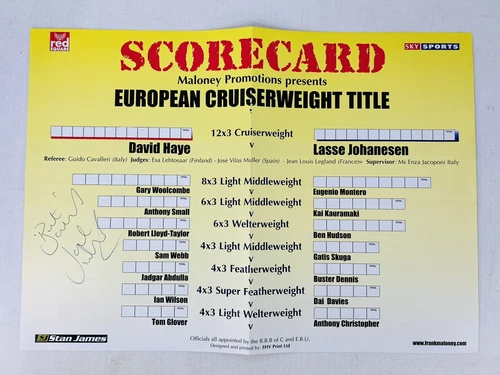 Boxing Score Card Signed - HAYE vs JOHANSEN - Autographed 2006 RARE