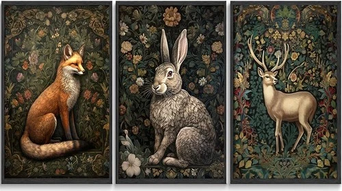 3Pcs William Morris Animal Wall Art Fox Rabbit Sika Deer Canvas Posters Prints F