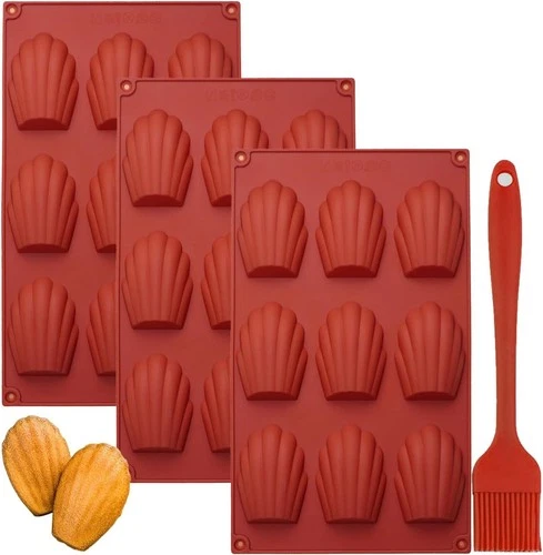 3x Silicone Madeleine Baking Pan 9 Cavities 1x Brush BPA Free Mini
