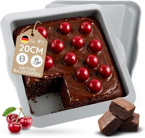 Brownie Baking Pan 20x20cm Square Silicone, Cake Casserole Tiramisu, BPA Free