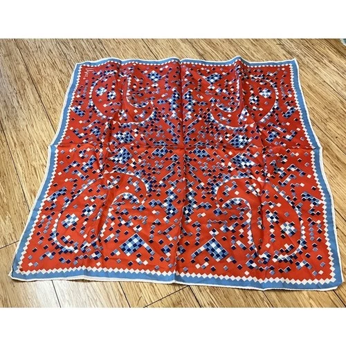 Vintage Vera Neumann Scarf Square Geometric Blue White Red 22" Made In Japan