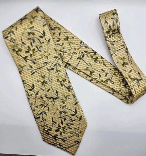 Ermenegildo Zegna Yellow Floral Geometric Embroidered Tie 58.25X 3. 75"