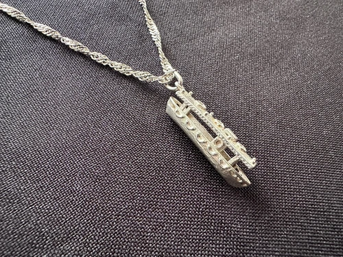 Boat Narrow Ferry Sailing Pendant Necklace 925 Sterling Silver Chain 7.8g