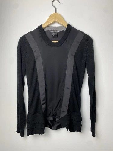 Black THOMAS WYLDE Rhinestone Long Sleeve Black knit Top Blouse - size M - VGUC!