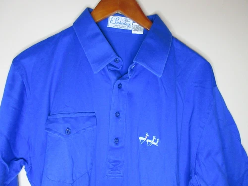 Sz XL Vintage Pickering NWOT Men's BLUE Button Up Short Sleeve Polo Shirt NEW