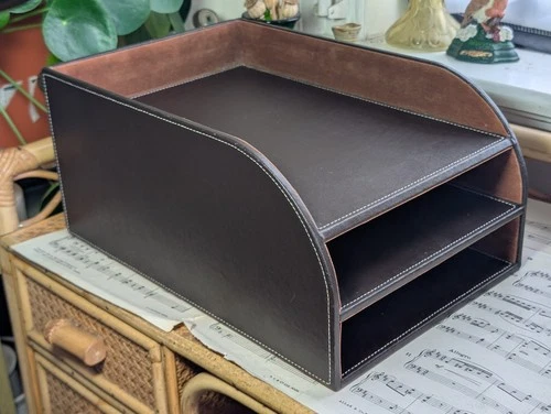 Osco Faux Leather 3 Tier Letter Tray - Brown