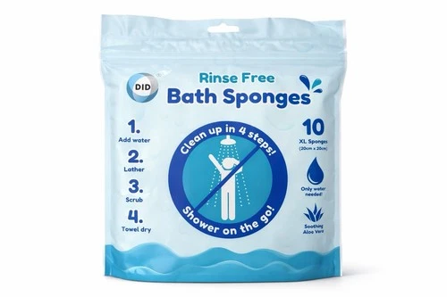 Rinse Free Bath Sponges 10 Pack XL No Rinse Body Wash Travel Care