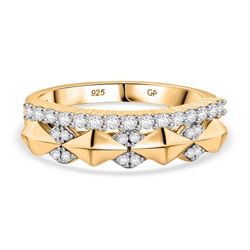 White Diamond Band Ring in 18K Gold Vermeil Over Sterling Silver - Geometric
