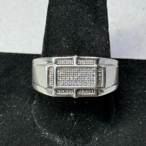 MENS .925 STERLING SILVER .30 CTW DIAMOND RING Sz 11.25