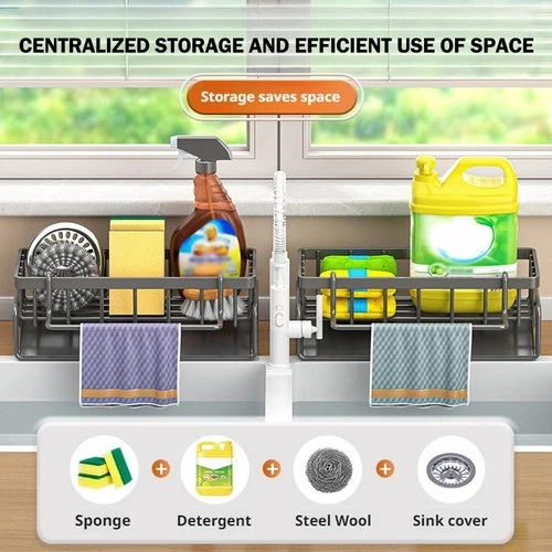 3-in-1 Kitchen Sink Caddy Organizer with Sponge Holder, Brush Holder, Extra R...