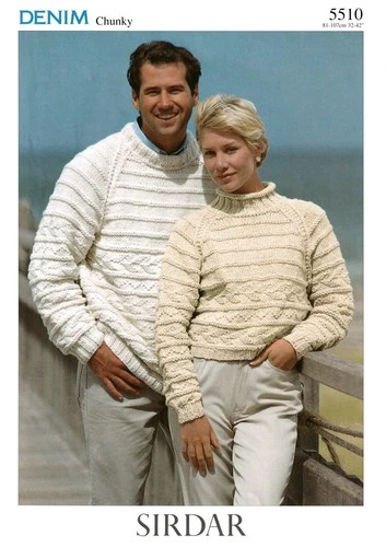 His and Hers Unisex Sweater Chunky Knitting Pattern Copy Sirdar 5510 32-42 ins.