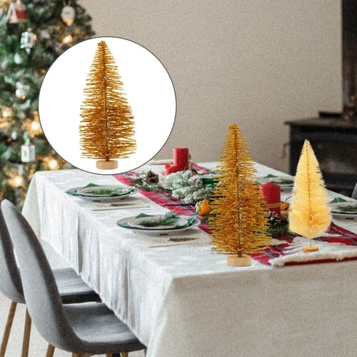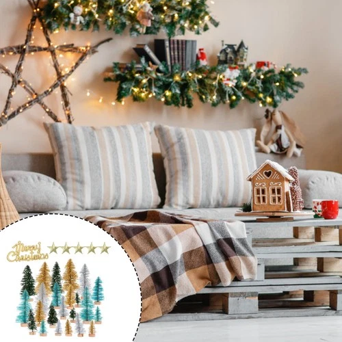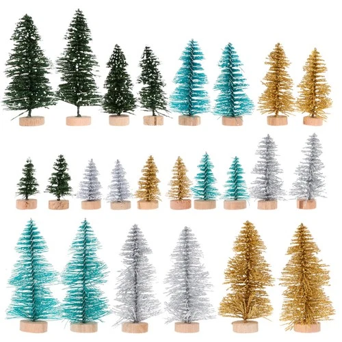 24Pcs Three Layers Christmas Trees Decor Lovely Mini Trees with Wood Base