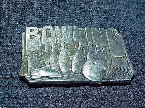 BOWLING BELT BUCKLE SISKIYOU CO WILLIAMS OREGON 1985 PINS SHOES BALL METAL 0-30.