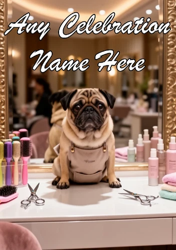 nai186 Pug Hairdresser Birthday card Father Mother Retirement any Occasion
