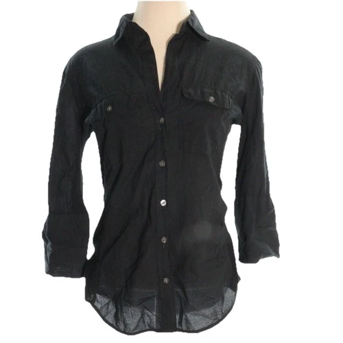 Standard James Perse Women Black Cotton Collared Button-Up Roll Sleeve Size 2