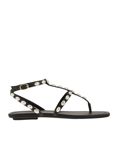 Stuart Weitzman Embellished Pearlita black leather Thong Sandals flats size 7