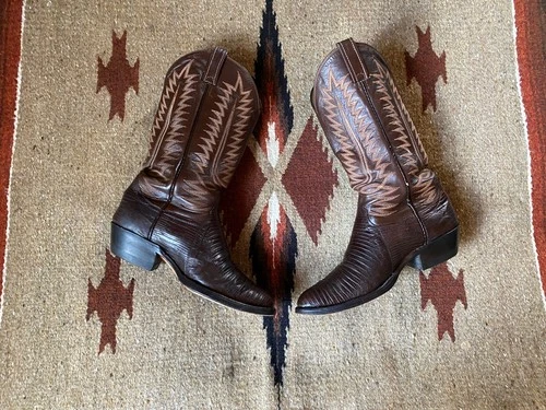 Cowtown Western Cowboy Rodeo Boots Exotic Teju Lizard Men 8E Vintage