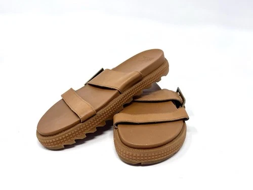 Sorel Womens Roaming Buckle Slide Sandals Size 7 Brown Leather Slip-On Adjustab