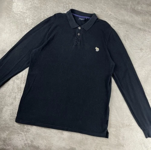 Paul Smith Polo Shirt Men’s Long Sleeved Black PS Striped Zebra Size Large
