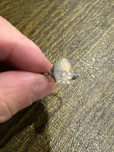 Rare Moonstone Skull With Moissanite Setting Sterling Silver Ring Adjustable