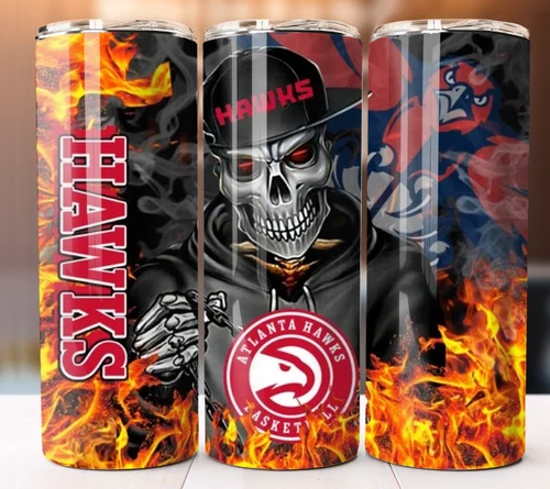 Atlanta Hawks Skull Fire NBA Basketball Tumbler 20 oz Cup Mug Straw Flask 20oz