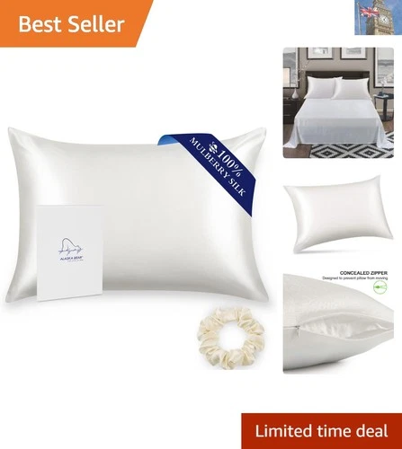 Silk Pillowcase (50x75cm) for Wrinkle-Free Skin and Frizz-Free Hair, Ivory White