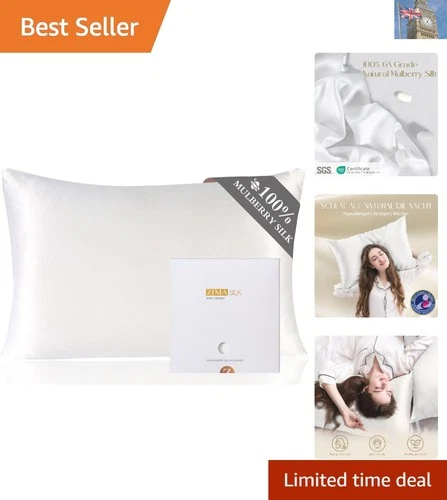 Hypoallergenic 600 Thread Count Mulberry Silk Pillowcase for Radiant Skin, White