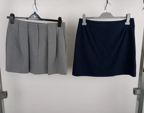M&S Womens 2pcs Grey Pleated Mini Skirt & Navy Pinstripe Mini Skirt Size UK 14