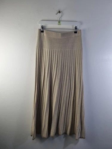 M&S Women's Knitted Long Skirt Size L Beige Glitter NEW