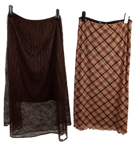 M&S Women's Midi Skirts Size 14 REG Brown 2Pcs Bundle Floral Lace & Checked NEW