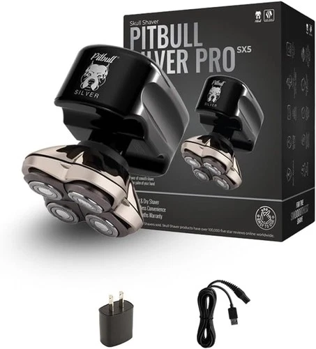 PITBULL SILVER PRO SX5 SKULL SHAVER/HEAD AND FACE SHAVER USB LEAD ETC