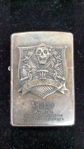 Vintage Zippo 1999 "A Sea Robber" Skull Pirate Emblem Oil Lighter