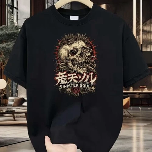 Sinister Soul Gothic Skull and Chains Design Adult Front Print T-Shirt P1-N25