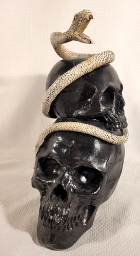 2 Skulls Sculpture White Snake Gothic 11" Figurine Decoration Halloween