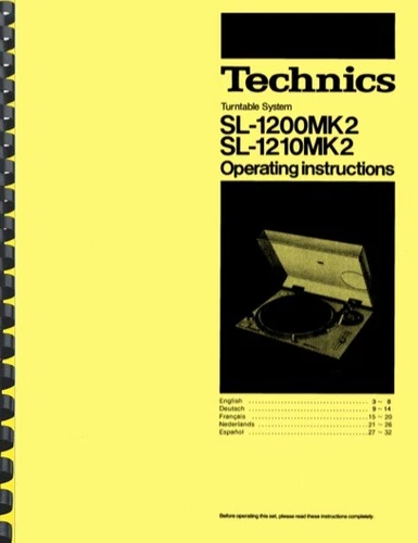 Technics SL-1200MK2 SL-1210MK2 Turntable OWNER'S MANUAL and SERVICE MANUAL