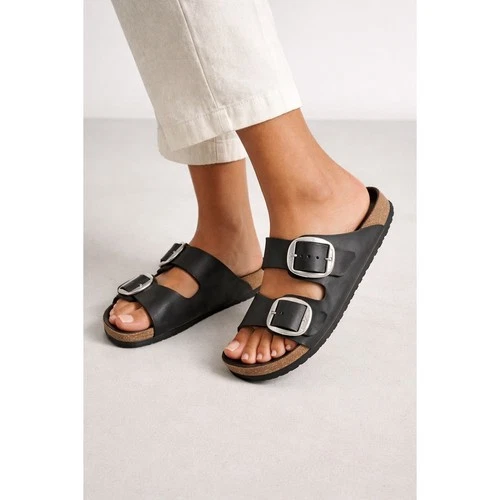 Birkenstock Arizona Big Buckle Black Leather Slide Sandals 38 L 7 M 5