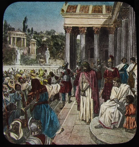 Glass Magic Lantern Slide PILATES PROTESTATIONS OF GUILELESSNESS C1910 RELIGIOUS