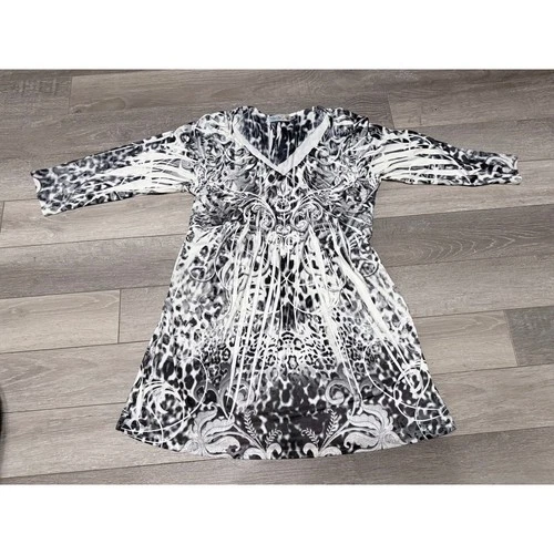 Unity World Wear Womens Medium Black White Animal Print Boho Tunic Top