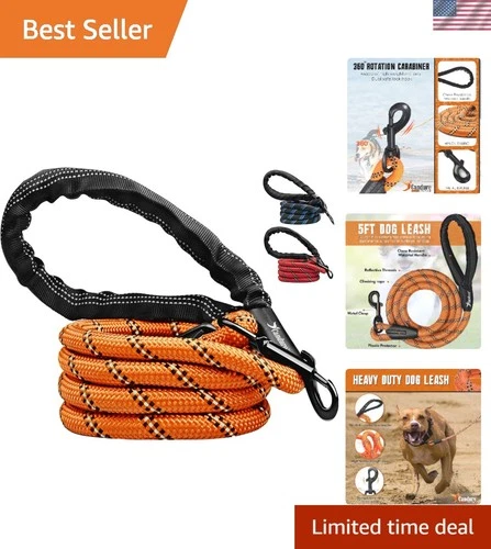 Durable 5 FT Nylon Dog Lead with Anti-Slip Grip for Small to Large Breeds