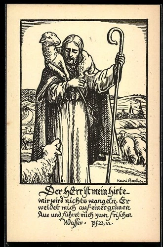 Postcard Jesus Christ as Shepherd with Shepherd's Staff and Lamb, Meaning