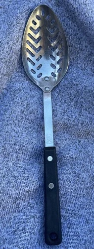 EKCO Forge Stainless Serving Slotted Spoon Black Handle 11.5” USA Vintage