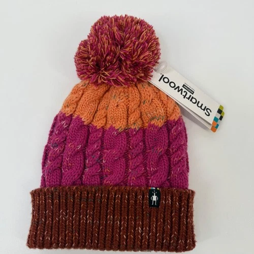 Smartwool Women Isto Retro Beanie Hat Pompom Winter Merino Wool Pink Pecan Brown