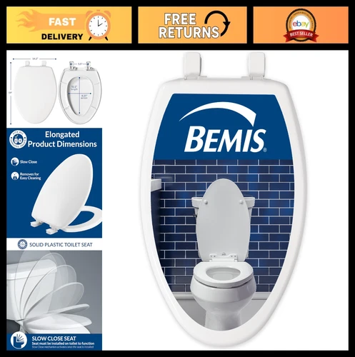 Elongated Slow Close Toilet Seat with Easy Clean Hinges - Durable Plastic, White